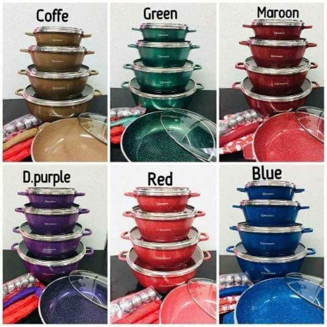 ✔️ Eco-healthy and easy for clean ✔️ High class non-stick performance anti scratch ✔️ Bakelite handle resistant to high temperature ✔️ Fashionable type suit for all kitchens and family ✔️ Ceramic or Nonstick interior coating ✔️ Suitable for gas stove only (Infrared and induction cooker are NOT advisable) ✔️ The bottom of the pot thread energy-saving bottom design! Heating faster! More uniform heat and more energy saving! SPECIFICATION : Material : Granite Alloy Aluminium Coating : Ceramic Dimension of box:34 x 34 x 34cm WHAT INCLUDE : 1 x 20cm casserole 1 x 24cm casserole 1 x 28cm casserole 1 x 32cm casserole 1 x 28cm deep fry pan 5 x Lid 2 x Glove
